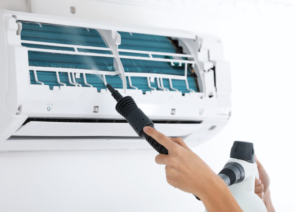 A helyi viszonyoktól függően erre a legjobb időpont a kánikula szezon előtti/a komolyabb virágzási időszak vége. A klímaberendezés takarítását vegyszerrel végezzük, illetve egy különleges tisztaságot eredményező karbantartó eszközzel. A beltéri egységre egy „speciális gumis takarót” húzunk. Zárt rendszerben nagynyomású mosó berendezéssel tisztítjuk meg a készüléket. Kimossuk/fertőtlenítjük a klímát, miközben semmi nem kerül a helyiség falára, vagy szőnyegére. Tisztaság fél egészség!